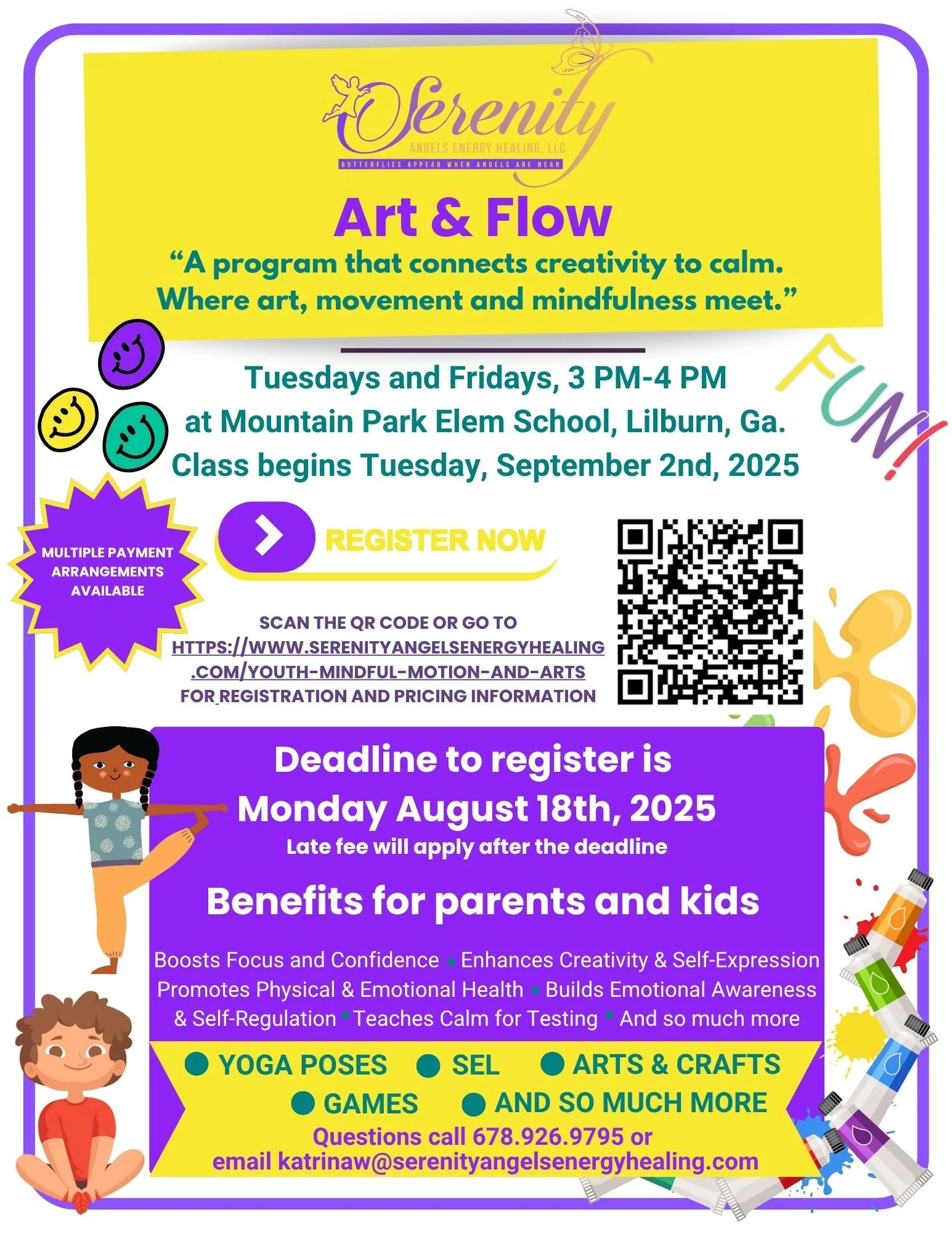 • Release built-up energy through engaging yoga poses, arts and crafts, breathing exercises and fun games.