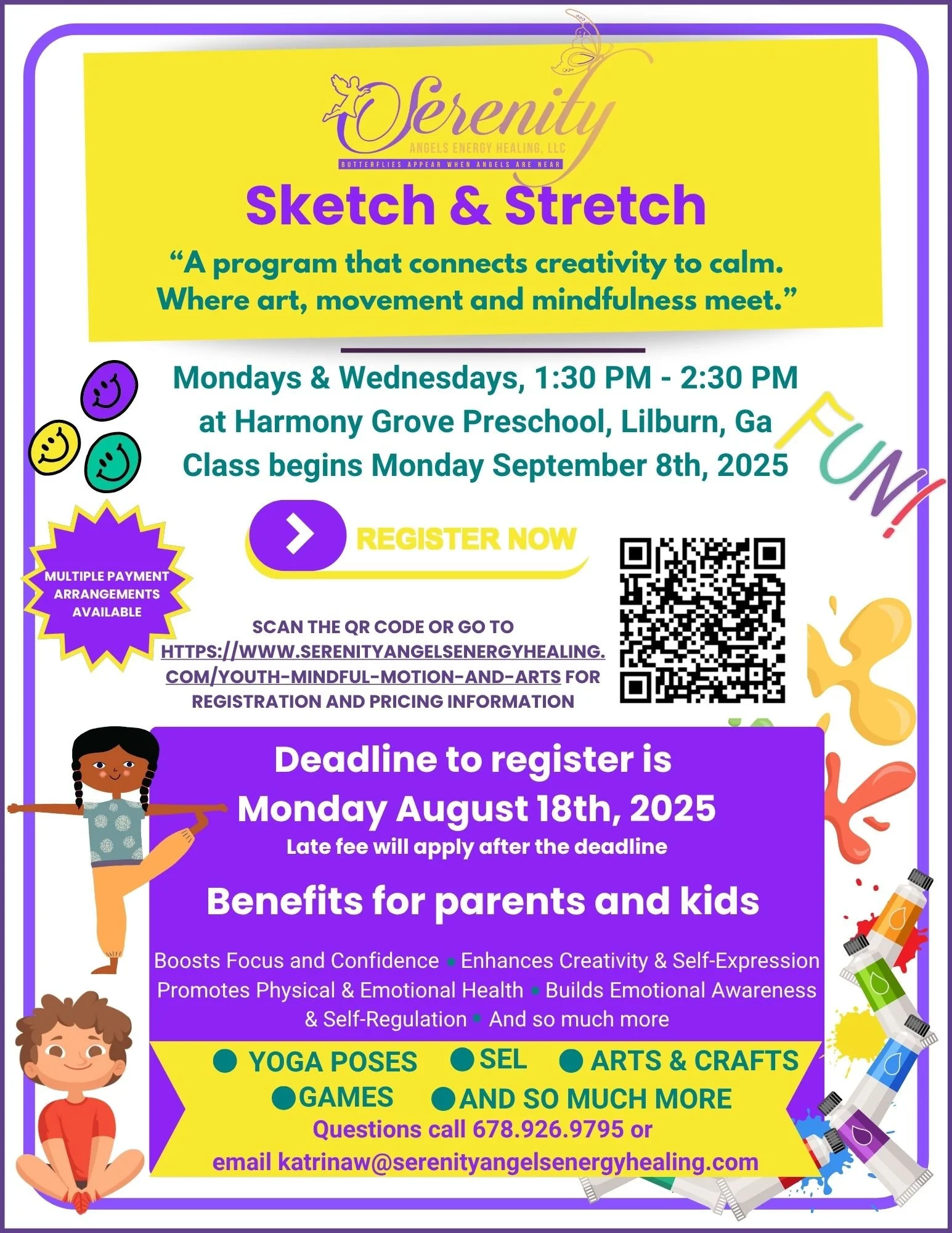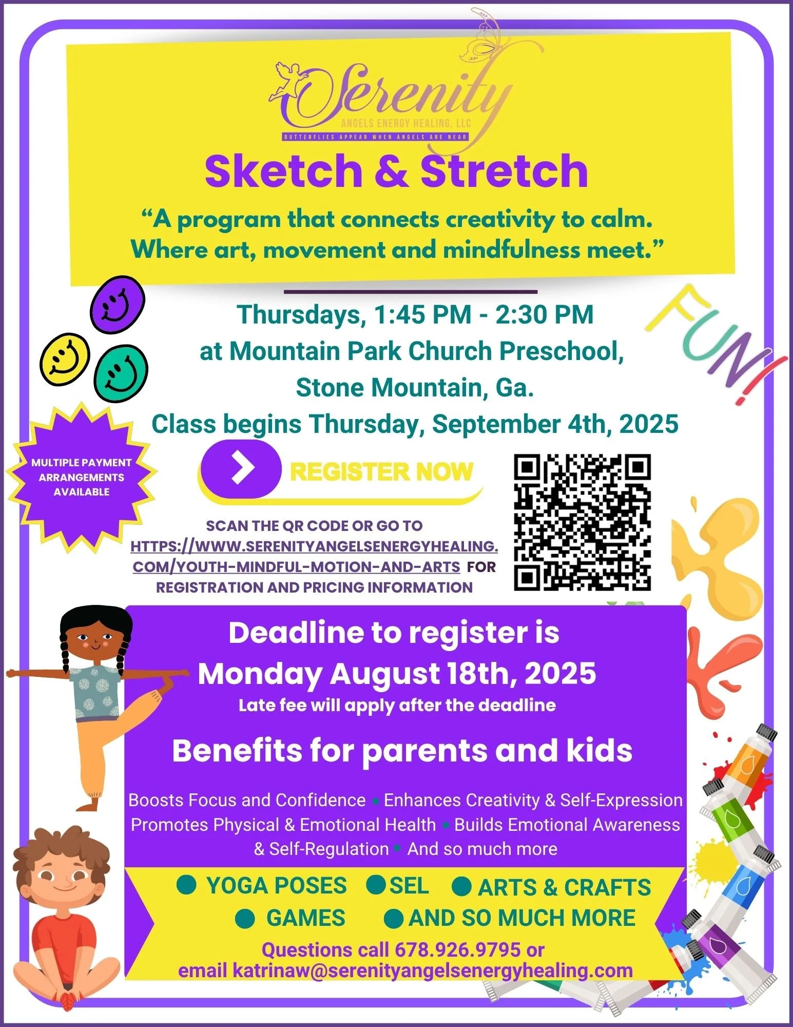 • Release built-up energy through engaging yoga poses, arts and crafts, breathing exercises and fun games.